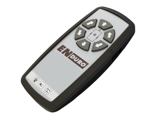 The EM303+ has a splash and corrosion resistant sealed housing. With the supplied crank the drive rollers are engaged and disengaged on the tire (both sides at the same time). The remote control has a soft grip and easy to operate buttons.
