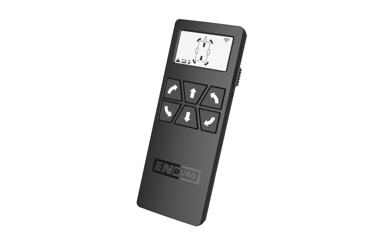 The EM313 has a splash-proof and corrosion-resistant sealed housing. With the supplied crank, the drive rollers are engaged and disengaged on the tyre (both sides at the same time). The remote control has a soft grip and easy-to-use buttons.