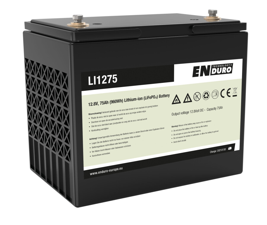 Deze 75Ah accu is toegevoegd aan het assortiment van Enduro en door het hoge vermogen zeer goed te gebruiken als boordaccu in de camper. De LI1275 is krachtig, licht in gewicht en geheel onderhoudsvrij.